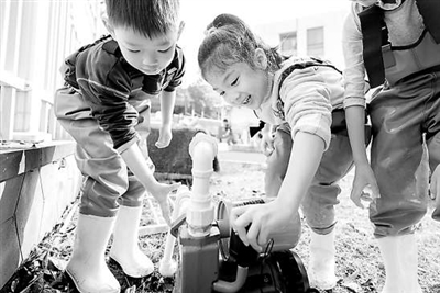 智慧緣起:水是生命之源,節(jié)約用水,應(yīng)該從小做起。當(dāng)前,節(jié)水已經(jīng)成為全社會的共識。在努力踐行這一做法的同時(shí),我們總會發(fā)現(xiàn),幼兒園里的沙池、水池,這些深受孩子們喜愛的游戲場,不可避免地存在著大量的水流失現(xiàn)象。沙與水是對孩子們非常具有吸引力的“玩具”,我們通過與孩子們對話、與家長對話、與設(shè)施設(shè)備工作人員對話,以幼兒園假期改建為契機(jī),開展了幼兒園里的“水循環(huán)”這一節(jié)水活動。