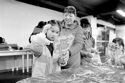 “把4個角按緊,再蘸點(diǎn)顏料,把空隙都填滿……”王蓉麗奶奶用不太流利的普通話,耐心地指導(dǎo)著孩子們進(jìn)行手工活動——扇面拓印。福字、窗花……在奶奶們的悉心指導(dǎo)下,孩子們制作的一幅幅精美扇面作品逐漸成形。