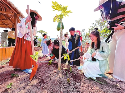 深圳市第六幼兒園的家長(zhǎng)與孩子一起開展春耕節(jié)的植樹活動(dòng)。 蔡信能 攝