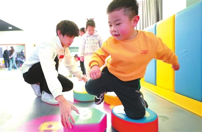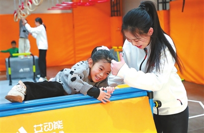 徐州幼兒師范高等專(zhuān)科學(xué)校體育學(xué)院畢業(yè)生徐倩,創(chuàng)辦了多家體能訓(xùn)練中心。這是她在陪小朋友進(jìn)行體能練習(xí)。