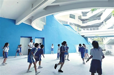 “我們調(diào)研發(fā)現(xiàn),在非寄宿制學(xué)校,學(xué)生們除了體育課或者吃飯,絕大多數(shù)時(shí)間都在教學(xué)樓?!备L飬^(qū)教育局相關(guān)負(fù)責(zé)人表示,這就需要在教學(xué)樓上為學(xué)生們開辟更多活動(dòng)空間。福田很多新建學(xué)校就根據(jù)學(xué)生這一需求,在教學(xué)樓走廊和架空層設(shè)置了許多富有趣味性的活動(dòng)空間。