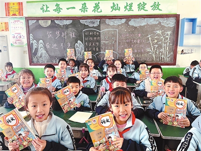 河北省曲周縣第二實驗小學學生領到新學期的教材。曲周縣教育體育局 供圖