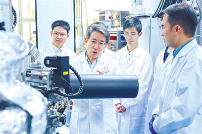 ①薛其坤(中)和團(tuán)隊(duì)成員在實(shí)驗(yàn)室。