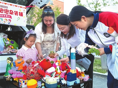 ①新疆生產(chǎn)建設(shè)兵團(tuán)第八師石河子市實(shí)驗(yàn)幼兒園的孩子在開展義賣。