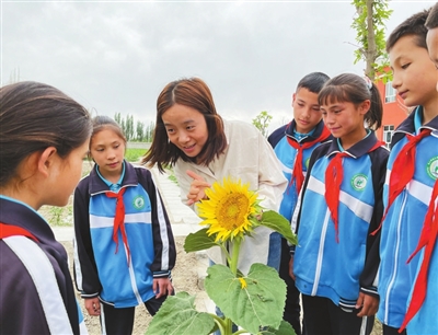 ②新疆生產(chǎn)建設(shè)兵團(tuán)第三師四十四團(tuán)第一中學(xué)的教師在帶領(lǐng)學(xué)生認(rèn)識植物。