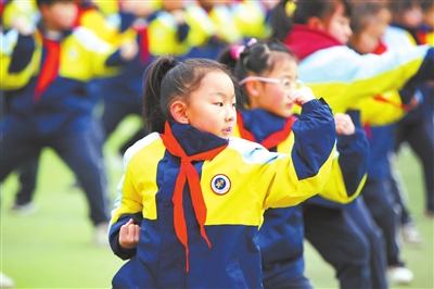 近日,江蘇省徐州市北辰小學,學生在大課間練習簡易武術操。