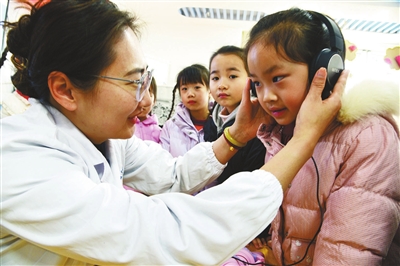 在全國(guó)愛耳日到來之際,江蘇省鎮(zhèn)江市蔣喬社區(qū)衛(wèi)生服務(wù)中心醫(yī)務(wù)人員在童蕾藍(lán)天幼兒園指導(dǎo)小朋友正確使用耳機(jī)。當(dāng)日,該服務(wù)中心醫(yī)務(wù)人員來到童蕾藍(lán)天幼兒園,開展“愛耳護(hù)耳 從小做起”活動(dòng),引導(dǎo)小朋友從小養(yǎng)成愛耳護(hù)耳習(xí)慣。石玉成 攝