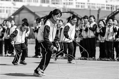近日,在山東省青島市李滄區(qū)實驗小學,學生在課間比拼滾鐵環(huán)。該校組織學生在15分鐘課間進行滾鐵環(huán)、打陀螺、丟手絹等傳統(tǒng)體育活動,讓傳統(tǒng)游戲在校園中煥發(fā)出新活力。近年來,青島市李滄區(qū)在全區(qū)小學校園常態(tài)化將課間10分鐘延長至15分鐘。各學校根據(jù)實際情況創(chuàng)設踢毽子、跳繩、呼啦圈等豐富多元的課間活動,促進學生健康成長。張鷹 攝