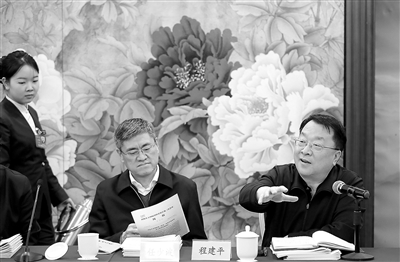 3月7日,全國(guó)政協(xié)十四屆三次會(huì)議教育界別小組會(huì)議上,全國(guó)政協(xié)委員程建平(右)發(fā)言。本報(bào)記者 張學(xué)軍 攝