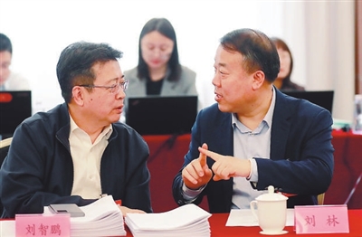 ②教育界別小組會(huì)議,全國政協(xié)委員劉林(右)和劉智鵬交流。