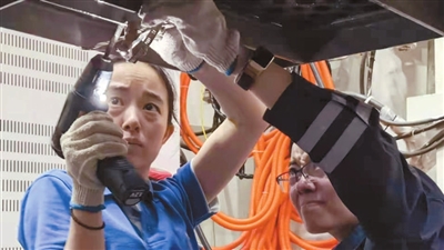 中國(guó)科學(xué)院深??茖W(xué)與工程研究所研究員張維佳(左)和上海交通大學(xué)深部生命國(guó)際研究中心副研究員趙維殳(右)在馬里亞納海溝固定“奮斗者”號(hào)載人潛水器的采樣裝置。 上海交通大學(xué)供圖(資料圖片)