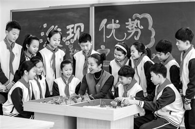 3月11日,在山東省青島市王埠小學,老師為學生們介紹沙盤心理趣味游戲。近年來,青島市李滄區(qū)依托“教師+課堂”兩個抓手,通過“普查、輔導、活動”三種手段,營造全員全程的育心氛圍。通過開展不同年級的心理講座、心理調(diào)研、心理訓練、心理團建等師生心理體驗服務活動,讓學生變得更具創(chuàng)造性,生活更有活力,心理更加健康。