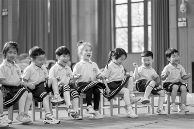 浙江嘉興經(jīng)濟(jì)技術(shù)開發(fā)區(qū)石雪幼兒園的孩子們開心地參與音樂活動。夏麗娟 供圖