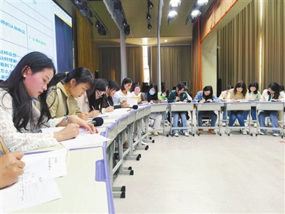 組圖為2023年,山東省臨沂市蘭山區(qū)義堂鎮(zhèn)中心小學(xué)觀課議課活動(dòng)現(xiàn)場。