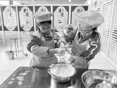 錦湖小學學生在學習濾豆?jié){。學校供圖