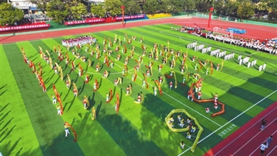 鼓點鏗鏘,一條金龍驀地騰空,龍尾掃過處,喝彩聲響徹操場。