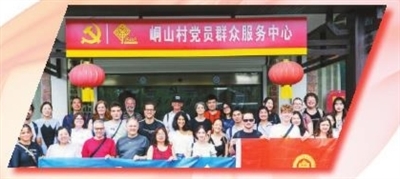 參加珞珈國(guó)際夏令營(yíng)的外國(guó)高校師生與武大馬院志愿者參訪(fǎng)湖北鄂州峒山村黨員群眾服務(wù)中心。學(xué)校供圖