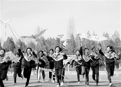 板橋鎮(zhèn)中心小學(xué)的同學(xué)們在放風(fēng)箏??h教育局供圖