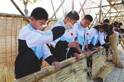 濱州市沾化區(qū)濱海鎮(zhèn)實驗學校學生在學習葦編技藝。 濱州市沾化區(qū)教體局供圖