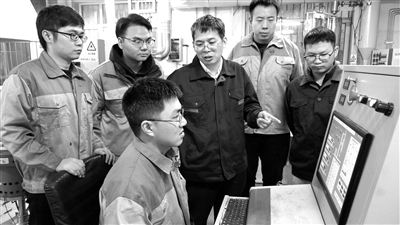 東北大學(xué)教授儲滿生(右三)和學(xué)生在實(shí)驗(yàn)室開展工作。 東北大學(xué)供圖(資料圖片)