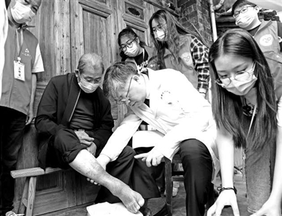 這些年,李校堃一邊做研究,一邊發(fā)起多項公益項目,每年帶隊去中西部、農(nóng)村為深受創(chuàng)面困擾的弱勢群體義診。參與“膚生工程”公益項目的藥學(xué)院學(xué)生厲丁瑋每次看到李校堃緩緩蹲下給病人看傷口,都鼻子發(fā)酸:“他自己有時還需要人扶一把啊?!?/p>