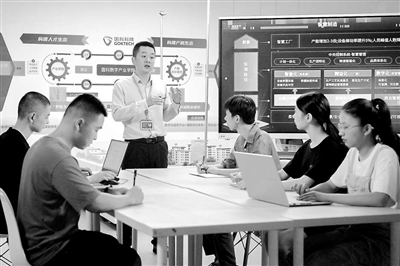 ②泉州職業(yè)技術(shù)大學計算機專業(yè)學生在福建國科信息科技有限公司實訓(xùn)基地上課。