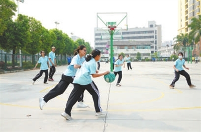 3月31日,瑞麗市第一民族中學(xué)學(xué)生在球場上打籃球。