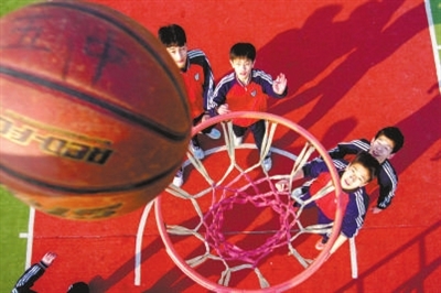 山東省淄博市高青縣第五中學籃球社團的學生利用大課間進行籃球訓練。 張維堂 攝