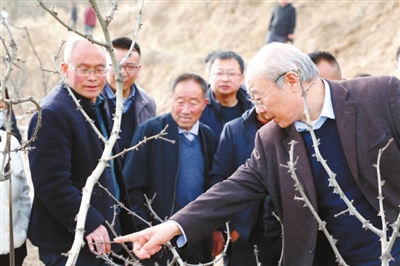 花椒專家魏安智(右一)在花椒地里給村民培訓(xùn)。本報(bào)記者 尹曉軍 攝
