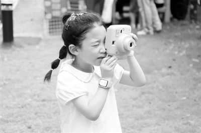 孩子在用相機拍攝植物。李阿慧 供圖