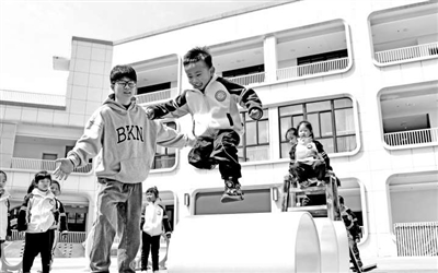迎暉幼兒園的孩子們在進(jìn)行體能訓(xùn)練。王華斌 攝
