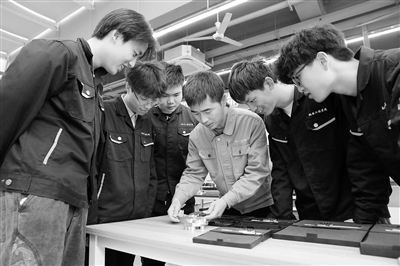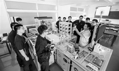 金華職業(yè)技術(shù)大學與永康職業(yè)技術(shù)學校共建“浙中五金智能制造產(chǎn)業(yè)學院”。圖為產(chǎn)業(yè)學院學生進行技能實訓。 學校供圖