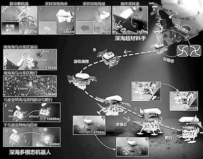 這一能在萬米深海實現(xiàn)多模態(tài)運動的小型深??勺冃螜C(jī)器人,由北京航空航天大學(xué)機(jī)械工程及自動化學(xué)院研究團(tuán)隊聯(lián)合中科院深海所、浙江大學(xué),歷經(jīng)6年共同研發(fā)而來,研究成果日前發(fā)表在國際學(xué)術(shù)頂刊《科學(xué)·機(jī)器人》上。