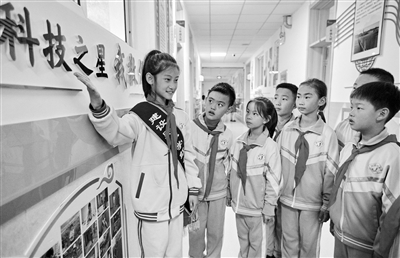 “錢學(xué)森爺爺沖破封鎖回國效力”“南仁東爺爺在貴州深山里造出‘天眼’”……河北省秦皇島市海港區(qū)建設(shè)路小學(xué)的走廊里常?;厥幤疬@樣的童聲。