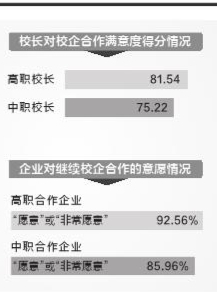 校企雙方對(duì)校企合作均表示滿意。調(diào)查結(jié)果顯示,高職和中職校長(zhǎng)對(duì)學(xué)校開展校企合作呈現(xiàn)出較高滿意度,分別為81.54分和75.22分;其中中職校長(zhǎng)對(duì)校企合作的滿意度較2019年上一輪調(diào)查結(jié)果提高了6.93分。高職學(xué)生和中職學(xué)生對(duì)學(xué)校從企業(yè)請(qǐng)來(lái)的教師教學(xué)水平表示非常滿意,分別得分84.98分和84.33分。有與職業(yè)學(xué)校合作經(jīng)驗(yàn)的企業(yè),較為頻繁開展產(chǎn)教融合活動(dòng)的企業(yè)數(shù)量占比78.83%,其中最主要的合作形式為接受實(shí)習(xí)生、到校開展招聘活動(dòng)以及到校開展職業(yè)生涯規(guī)劃和發(fā)展宣傳。絕大多數(shù)企業(yè)在與職業(yè)學(xué)校開展校企合作、產(chǎn)教融合活動(dòng)的過(guò)程中都有所收獲,特別是“降低企業(yè)培訓(xùn)成本”“降低企業(yè)招聘難度”“提升企業(yè)知名度”方面,選擇“沒有明顯收獲”的企業(yè)數(shù)量?jī)H占2.18%。與職業(yè)學(xué)校合作的用人單位,對(duì)校企合作、產(chǎn)教融合開展效果的整體滿意度均相對(duì)較高,此次調(diào)查中有87.82%的企業(yè)表示對(duì)合作成效滿意。其中,與高職學(xué)校合作過(guò)的企業(yè)有92.56%表示“愿意”或“非常愿意”繼續(xù)合作,與中職學(xué)校合作過(guò)的企業(yè)有85.96%表示“愿意”或“非常愿意”繼續(xù)合作。