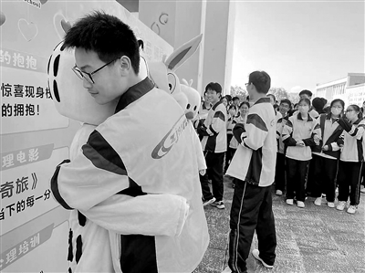 學(xué)生與玩偶擁抱。 象山縣教育局供圖