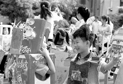 小朋友在進(jìn)行機(jī)器人創(chuàng)意服裝秀展示。