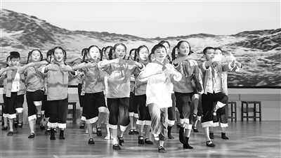 ①臨朐縣東城街道文昌小學(xué)學(xué)生正在演繹課本劇《紅色先鋒》。