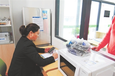 ①南京農業(yè)大學濱江校區(qū)誠苑3舍宿舍管理員王梅在進行藥品登記。