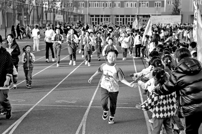 北京市順義區(qū)高麗營第二小學舉行校園親子跑活動。 梁星 攝