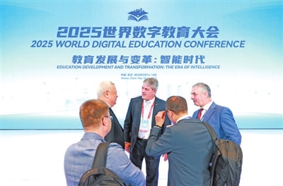 2025世界數(shù)字教育大會參會人員在現(xiàn)場熱烈討論。 本報記者 張勁松 攝