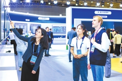 工作人員在介紹教育數(shù)字化成果。 2025世界數(shù)字教育大會會務(wù)組供圖