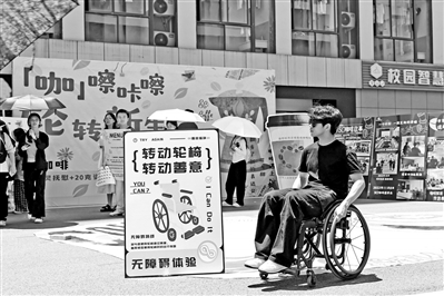 在無障礙體驗區(qū),學生感受輪椅上的世界,轉動的不只是車輪,更是對無障礙社會建設的思考。 胡揚輝 張貝貝 攝