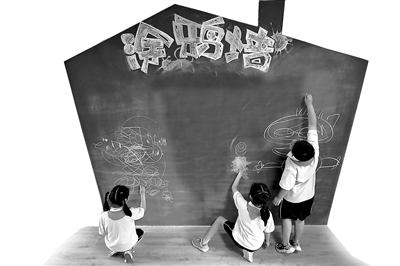 在長沙市岳麓區(qū)實(shí)驗(yàn)小學(xué)“心語花溪”心理成長中心的情緒宣泄室,學(xué)生通過涂鴉放松心情。