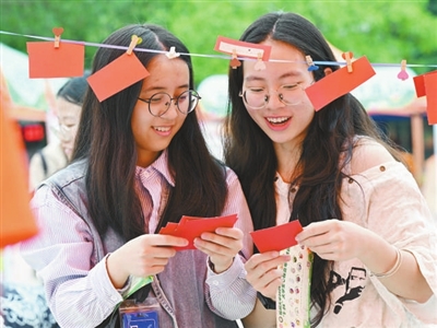 5月25日,在福州大學(xué)心理嘉年華活動(dòng)上,學(xué)生在觀看心理健康知識(shí)問答題卡。當(dāng)日是大學(xué)生心理健康日,以“培養(yǎng)積極心態(tài) 增強(qiáng)心理韌性”為主題的第21屆“5·25”心理嘉年華活動(dòng)在福州大學(xué)舉辦。 新華社記者 姜克紅 攝