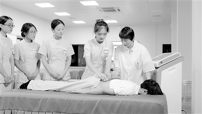 ② 教師田莉正在開展老年照護(hù)職業(yè)技能培訓(xùn)。