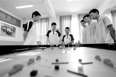 5月30日,內(nèi)丘縣第二中學學生在進行機器人競賽活動。