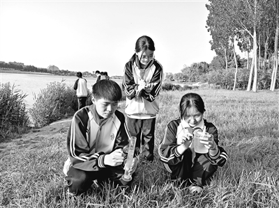 育華學校學生在探究大汶河生態(tài)系統(tǒng)退化原因。 學校供圖
