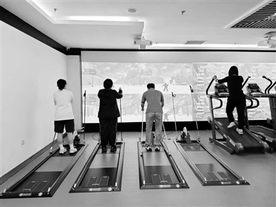 “體能提升”課上,學生在體驗智能滑雪機。學校供圖