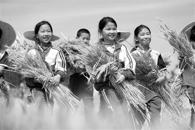 正值麥?zhǔn)諘r(shí)節(jié),山東省青島市即墨區(qū)靈山牛齊埠小學(xué)學(xué)生們種植的小麥迎來(lái)豐收。學(xué)生在教師指導(dǎo)下收割小麥、撿拾麥穗、脫粒晾曬,在忙碌中感受勞動(dòng)的艱辛和豐收的快樂(lè)。